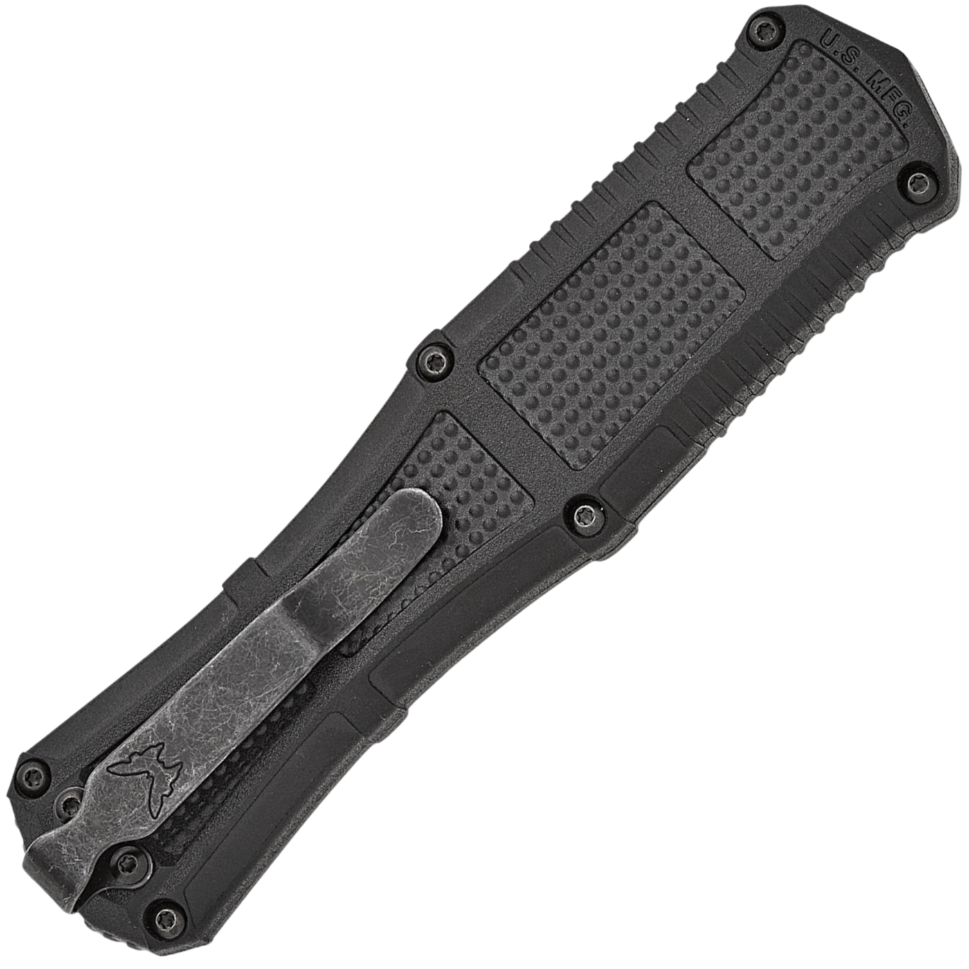 Known for its iconic ball-bearing matrix texturing, lightning-fast automatic actuation and strength and durability through hard-use tasks, the new 3370GY Claymore OTF expands your options for powerful tactical self-defense and performance. The new out-the-front configuration features a slider release button and double-edge CPM-D2 dagger housed in a lightweight Grivory® handle for ambidextrous confidence and hardcore utility in stressful situations. Choose between Black or Ranger Green handles and a plain edge or the new oversized dual-serrated blade.