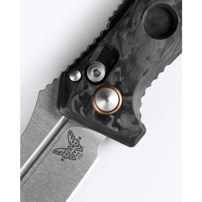 Benchmade Mini Auto Adamas, Marbled Carbon Fiber, Magnacut Stainless Steel