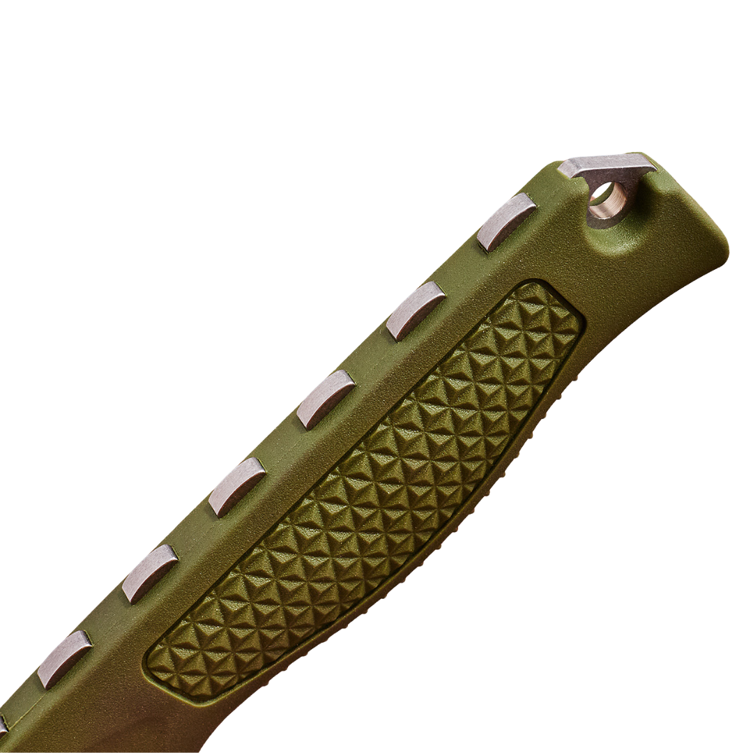The durable Santoprene handle delivers exceptional grip security, even in wet or slippery conditions, while its refined texture ensures comfort during long sessions. Enhanced with multiple grip points, including strategic jimping on the blade spine and handle, the Steep Country gives you confident control for precise cuts — whether it’s the first pass or the final detail.