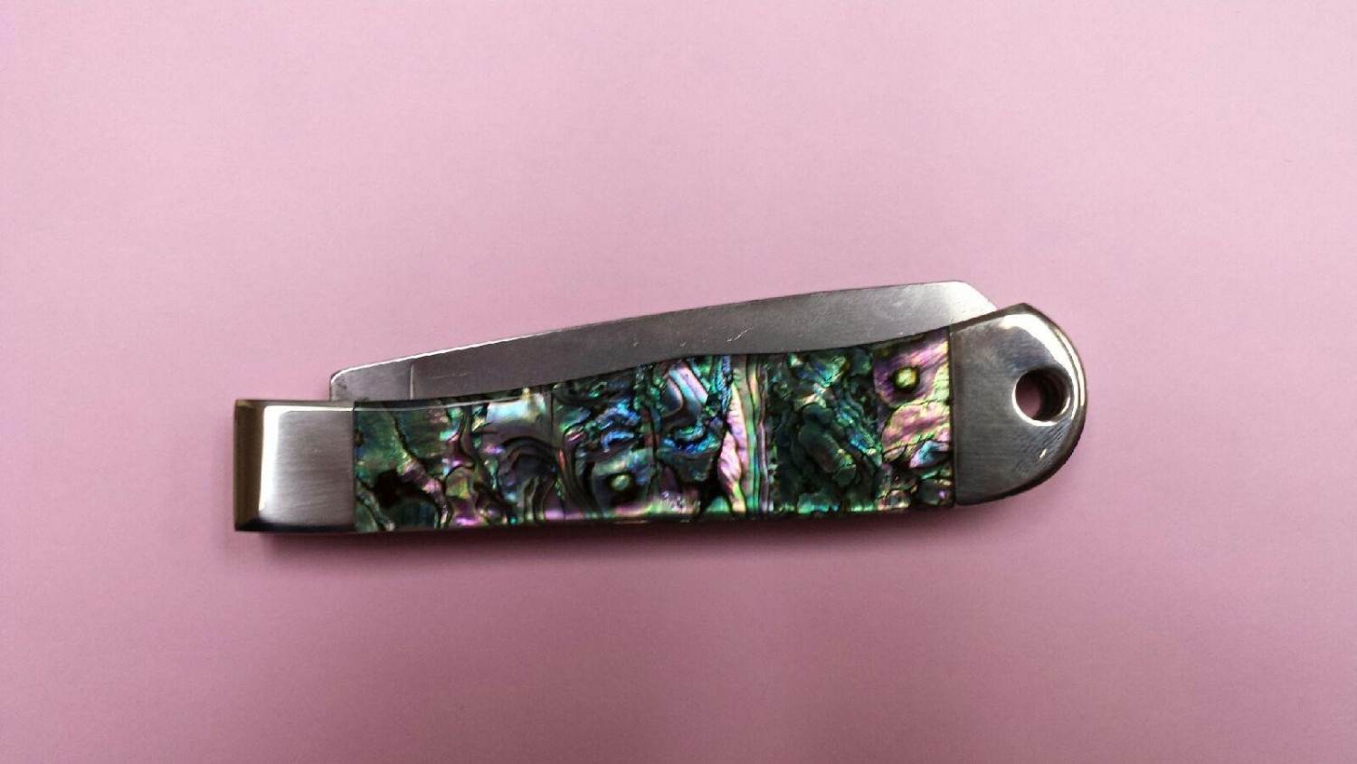 - Handle: genuine abalone – nickel silver bolsters and shield – lanyard hole
