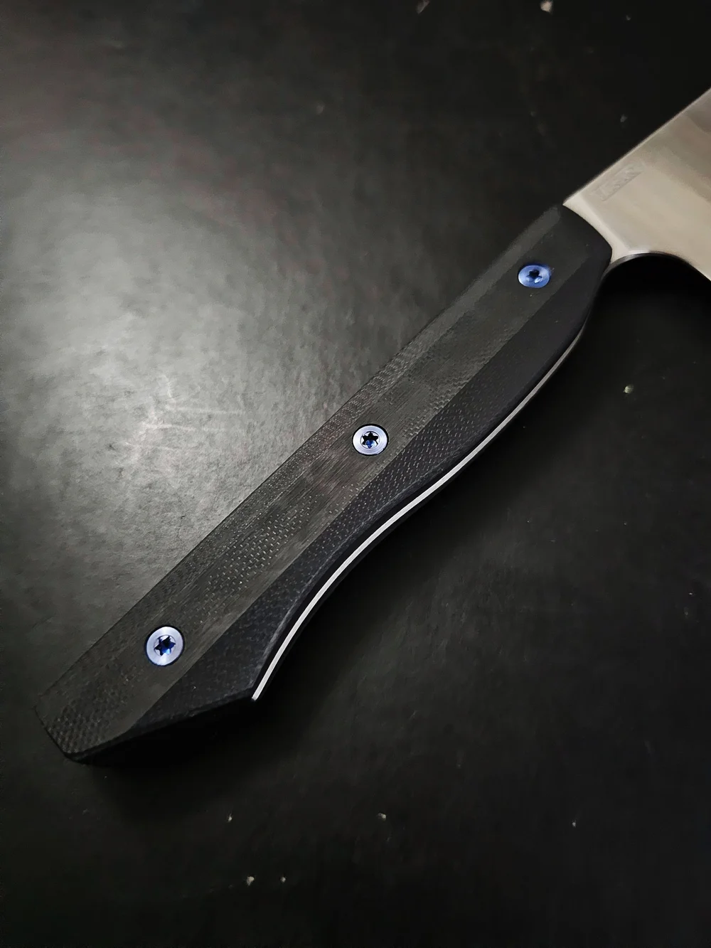 Currently, we use PM (Particle Metallurgy) grade steels. PM grade steels outclass traditional hand forged steels because there is a better distribution of the individual elements in the makeup of the material. When it comes to steel, you’re looking for HRC (hardness), toughness, and abrasion resistance. The hardness determines how sharp a material can get while the toughness affects how easily it will chip or snap on you. Abrasion resistance dictates how hard or easy the steel is to sharpen. With PM grade steels you have a product with a very clean uniform structure, and no fracture or green lines. PM grade steels allow you the possibility to heat treat consistently to the same standard to be very hard and very tough, have a very sharp edge that will maintain, and accrue an extreme resistance to chipping or breaking. There is currently no steel that outperforms the PM grade steels we have that is readily available.