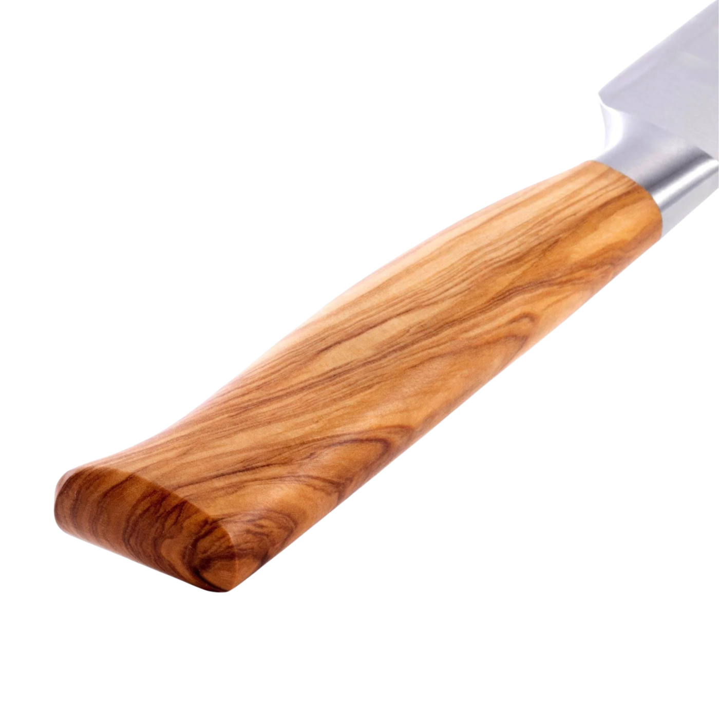 Carve like a pro with the Oliva Elite 8” Kullens Carving Knife. Designed with kullens (hollow-edge indentations) to reduce friction and food clinging, this slim, razor-sharp blade glides through roasts, turkeys, and tenderloins like a dream. Precision-forged in Solingen, Germany and paired with a stunning olive wood handle, it offers balance, control, and elegance on every occasion. Whether you’re plating for a party or slicing Sunday supper, this knife brings performance with polish.