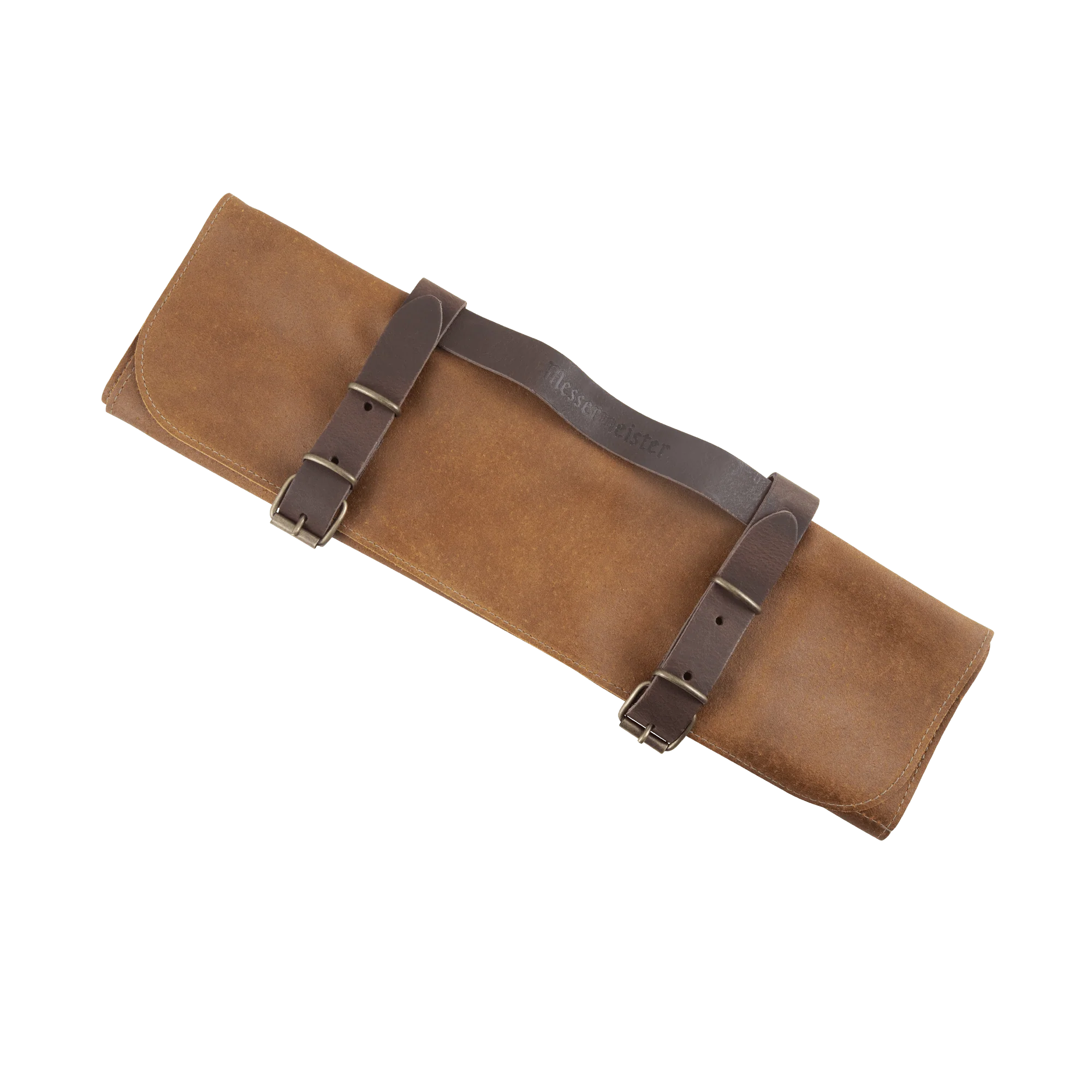 Vintage Leather Amber Knife Roll – 7 Pocket