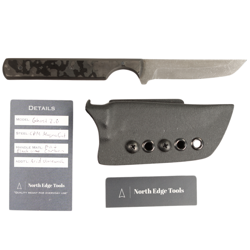 North Edge Tools Ghost 2.0 Fixed Blade – Acidwashed Magnacut and Black Fatcarbon