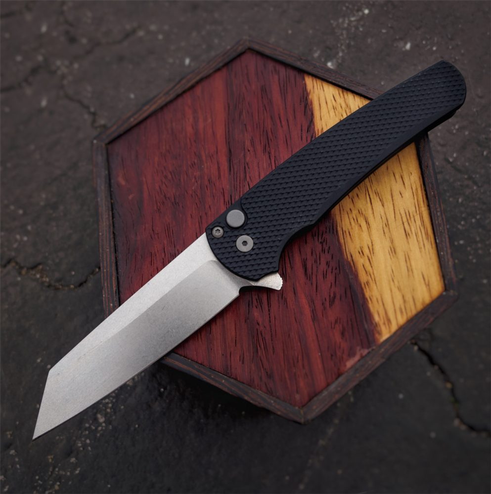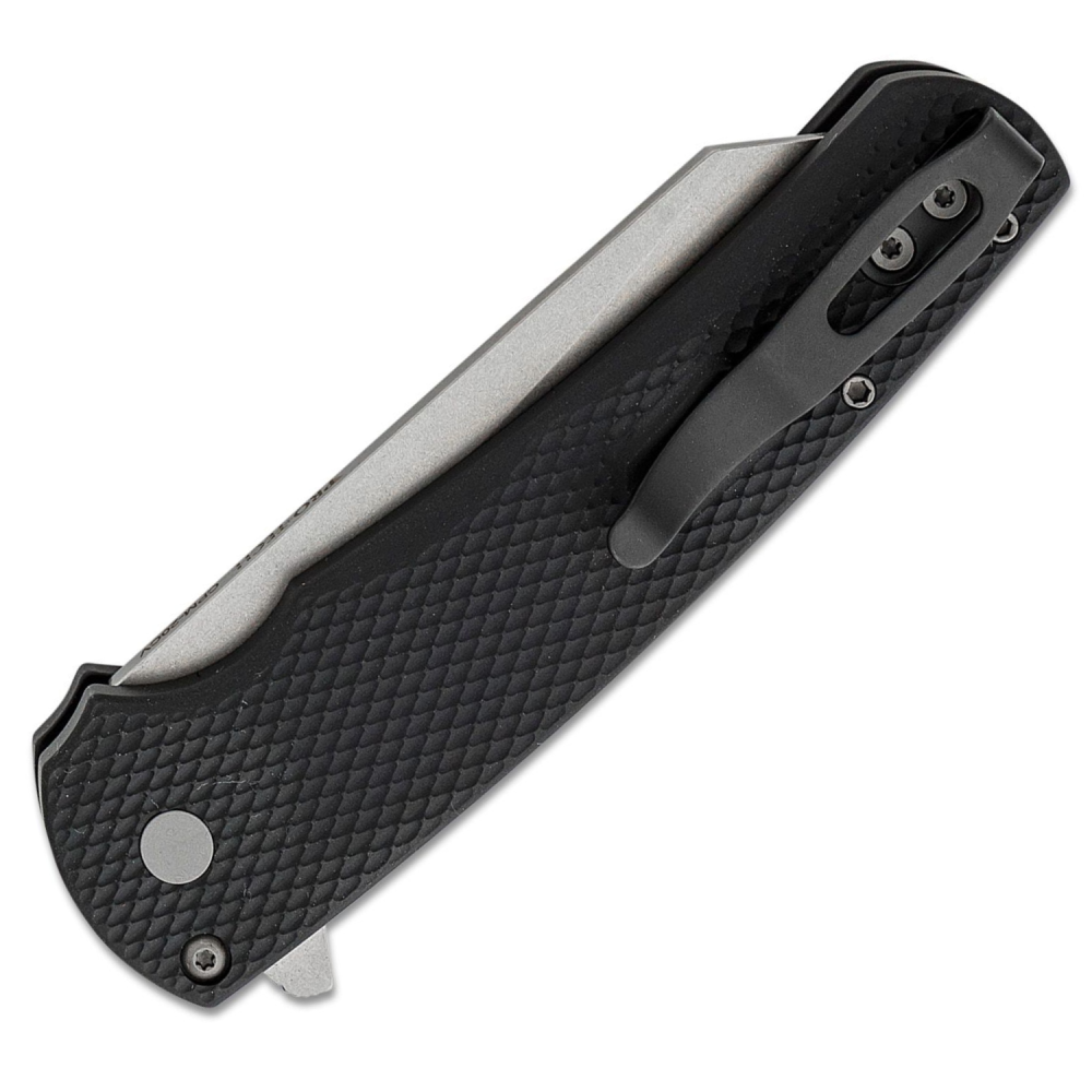 Highlighted by its silky smooth action and featherweight nature, the Malibu is an EDC force to be reckoned with. The reverse tanto blade is especially good at utility tasks with a slight belly and strong useful tip. The ergonomic handle is milled aluminum with a tapered shape and finger grooves that really allow for a solid, non-slip grip. The deep carry clip is set-up for right-hand, tip-up carry and a tiny lanyard hole is built into the single-pieces handle scales/backspacer. This model features a stonewashed blade and black textured aluminum scales.