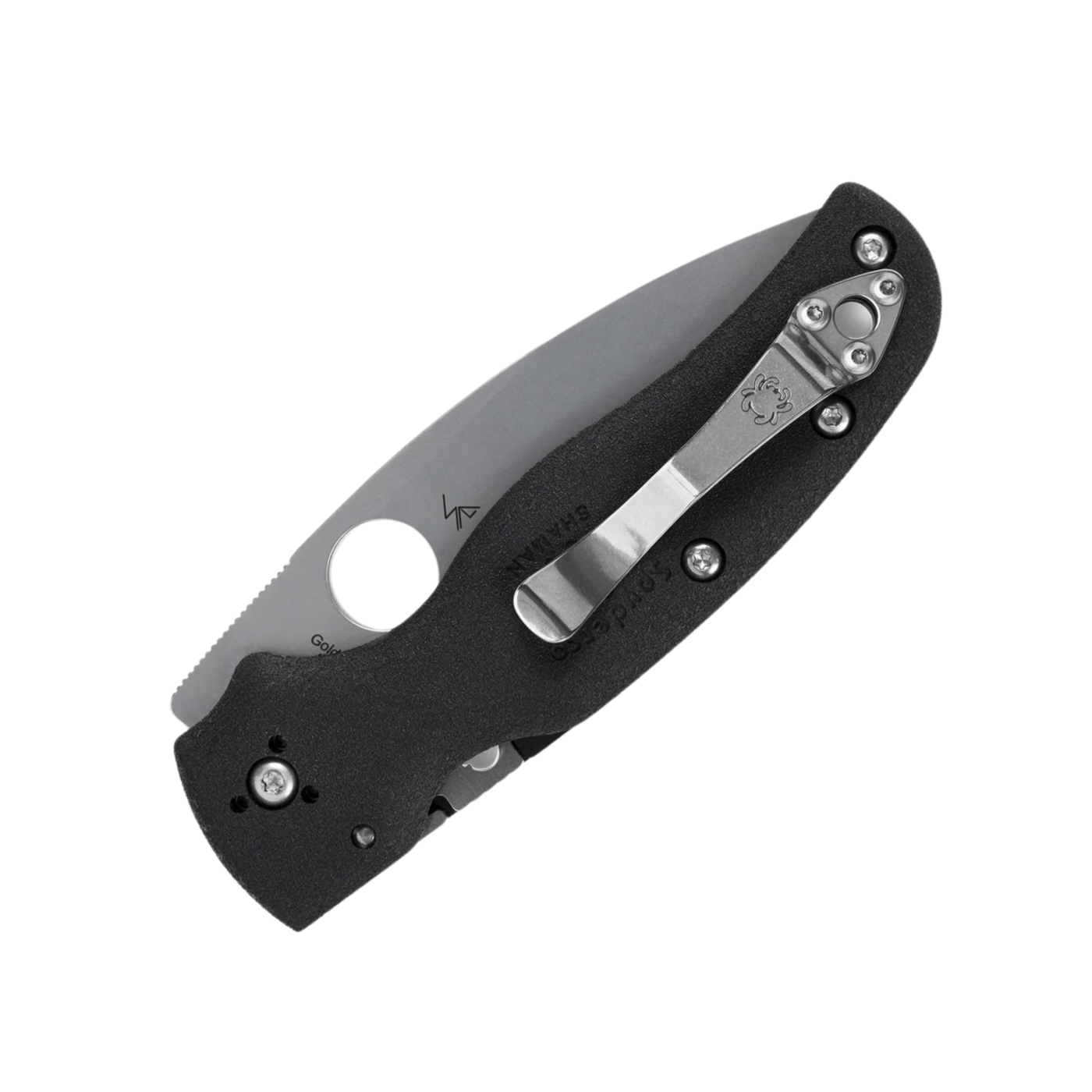 The Shaman has a well-deserved reputation as one of Spyderco’s most robust and capable folding knives. Building on that hard-earned trust, we are proud to introduce the Shaman Lightweight. It faithfully delivers all the proven performance and design features of the original, but in a lighter, more affordable format. The handle scales of the Shaman Lightweight feature the same comfortably radiused shape as the original, but are injection molded from resilient fiberglass-reinforced nylon (FRN). This reduces the knife’s overall weight by nine percent and adds a pebbled texture for an enhanced grip. The scales house nested, skeletonized stainless steel liners that provide outstanding structural strength and form the backbone of the knife’s high-strength Compression Lock® mechanism. That ultra-reliable lock supports a full-flat-ground CTS® BD1N stainless steel blade, which is available in both PlainEdge™ and fully serrated SpyderEdge™ configurations. A four-position pocket clip completes the package, allowing this remarkable knife to be carried tip-up or tip-down on either side of the body.